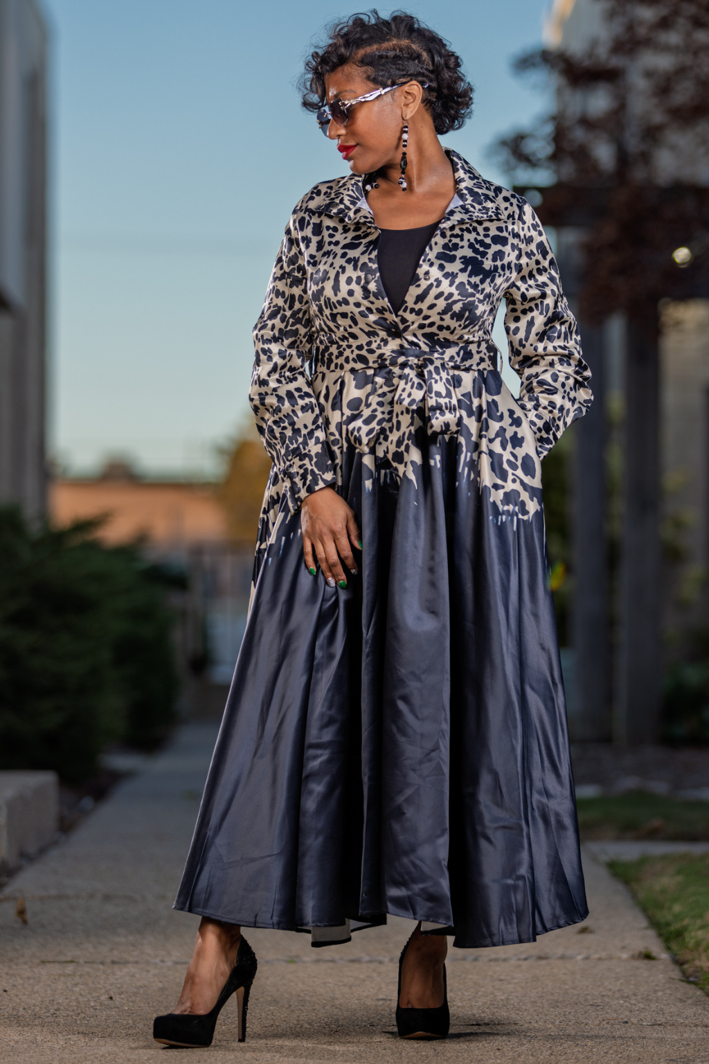 Unleash your inner confidence with the Nightfall Safari Maxi — a fierce yet refined button-down statement piece that transitions effortlessly from dress to duster. Crafted in a fluid satin-like fabric, it features a bold abstract leopard print top flowing into a deep black skirt, creating a stunning contrast that elongates and flatters every silhouette.