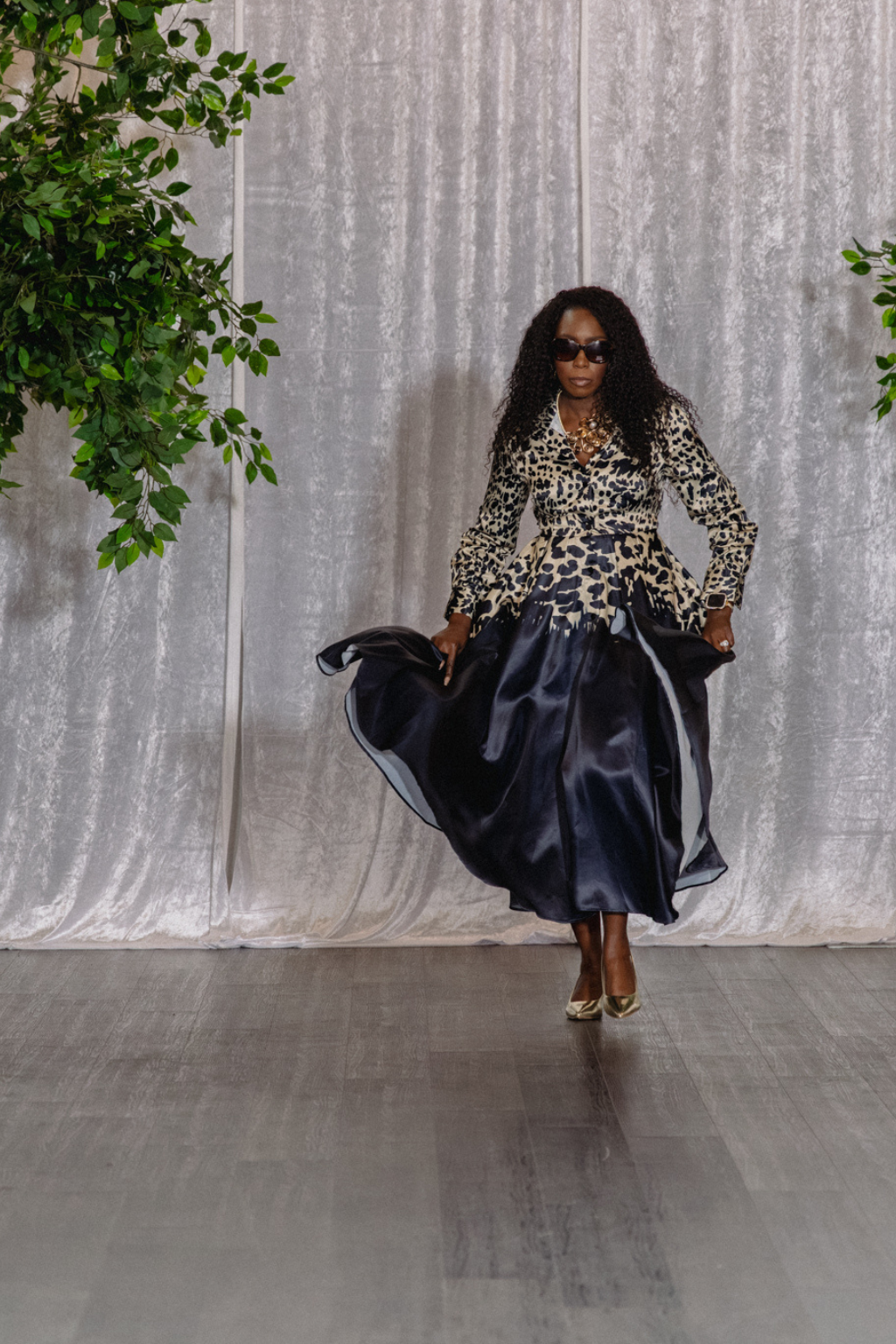 Unleash your inner confidence with the Nightfall Safari Maxi — a fierce yet refined button-down statement piece that transitions effortlessly from dress to duster. Crafted in a fluid satin-like fabric, it features a bold abstract leopard print top flowing into a deep black skirt, creating a stunning contrast that elongates and flatters every silhouette.