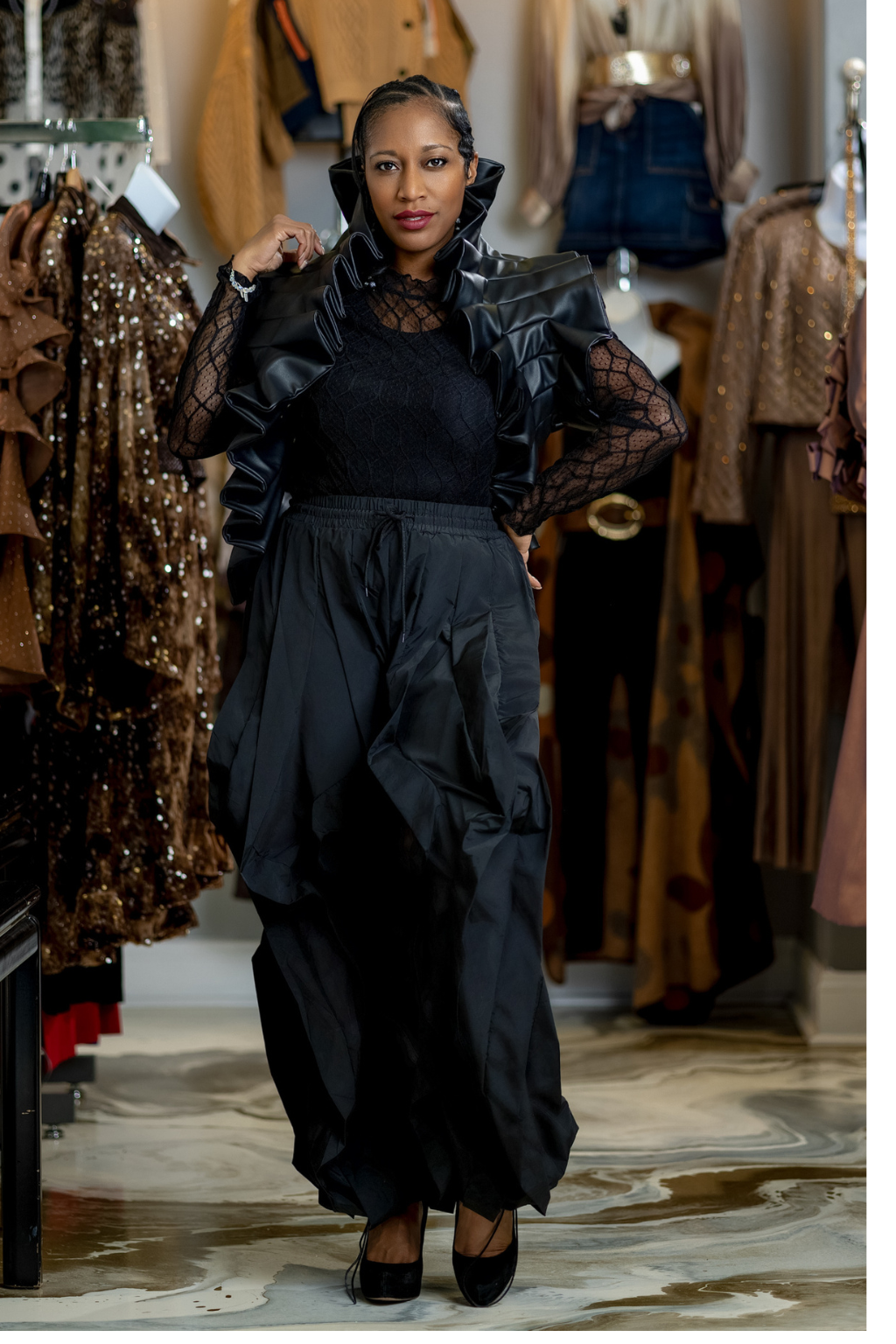 Each fold is meticulously crafted to create dimension, movement, and bold femininity — a wearable sculpture for the woman who leads with style and confidence.