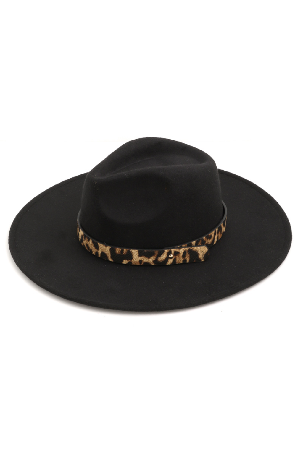 Turn heads with untamed elegance. This bold black wide-brim fedora is elevated with a fierce leopard print band, striking the perfect balance between wild and refined. Designed for the woman who commands attention, it’s the ultimate finishing touch to denim days, sleek jumpsuits, or even your statement outerwear.