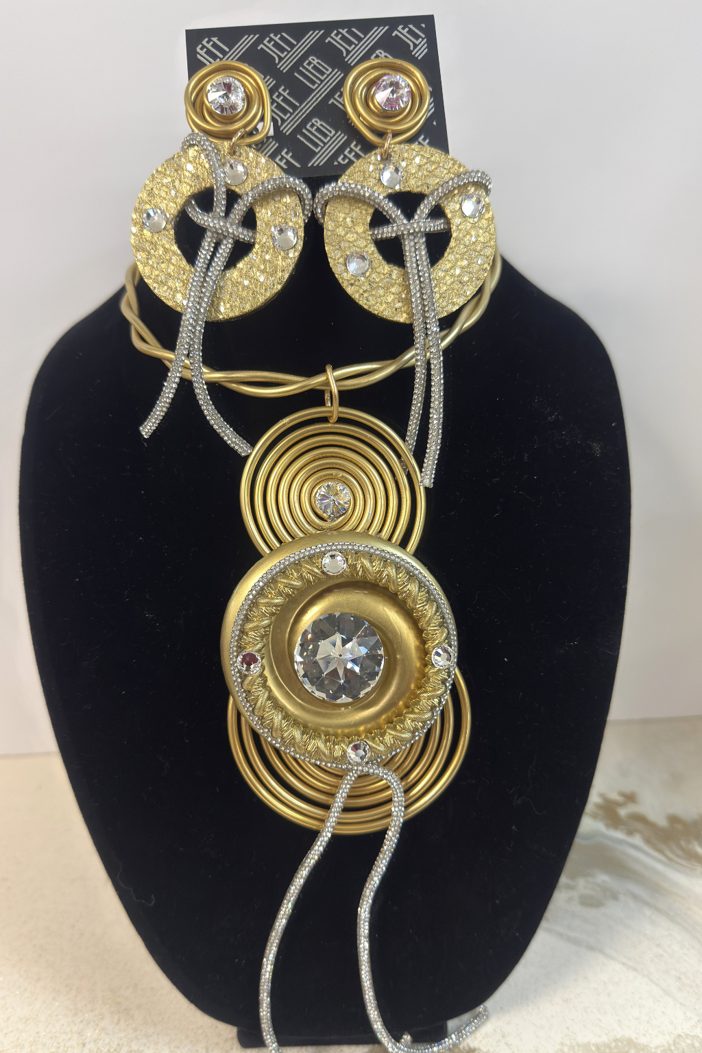 Step into the room already crowned. The Regal Halo Drip Couture Set is a commanding fusion of sculptural artistry and high-glam radiance, handcrafted by Jeff Lieb and illuminated with brilliant Swarovski crystals.