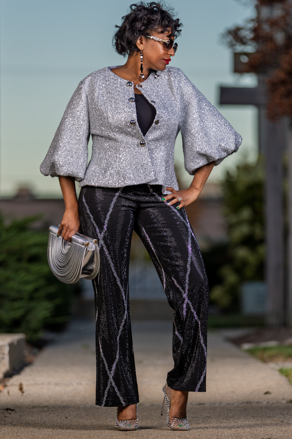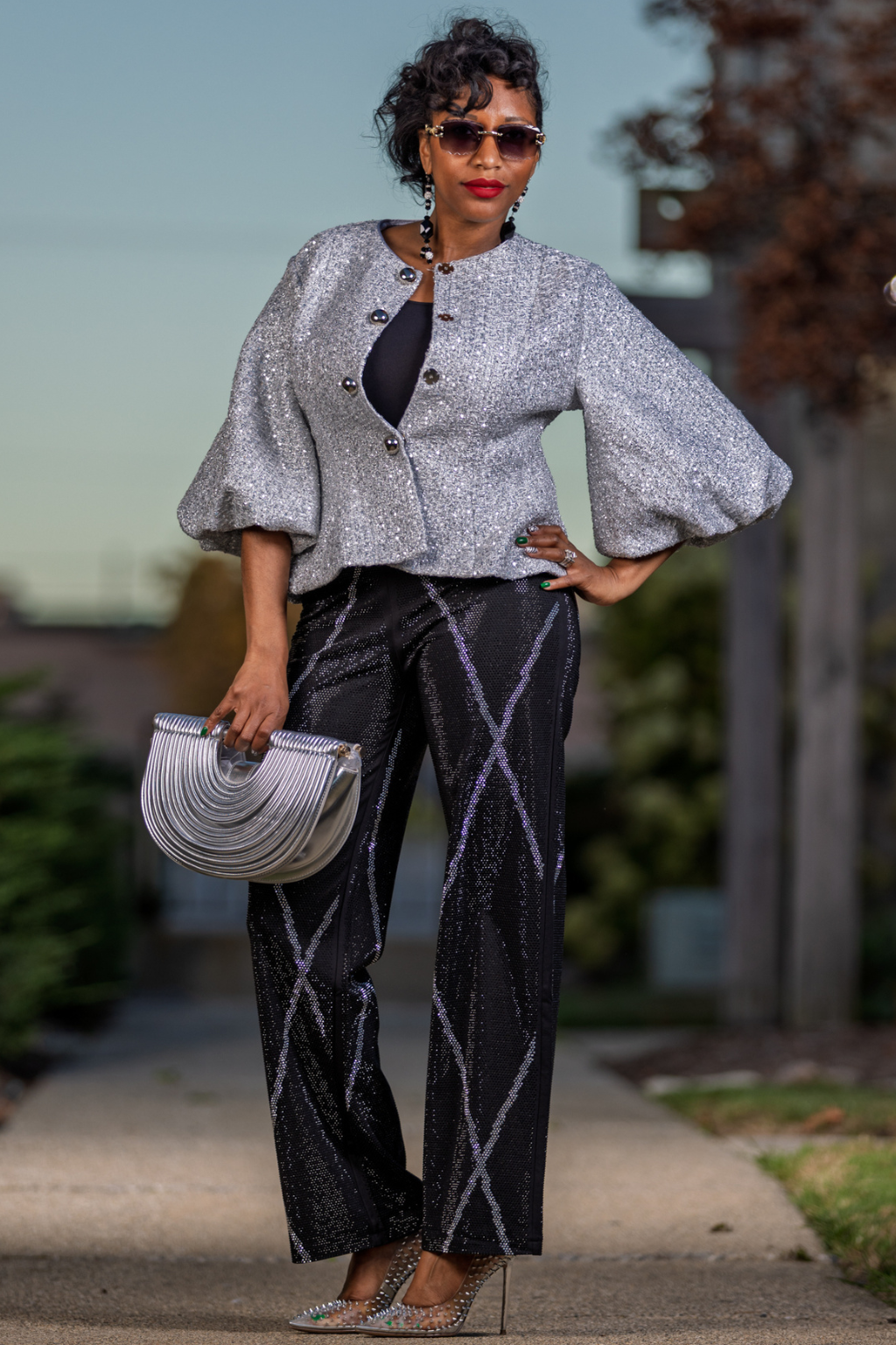 At the heart of its design is the statement fantasy floral brooch, a delicate accent that elevates the look with couture-inspired detail. Finished with pearl-like buttons, the Metallic Bloom Jacket is perfect for pairing with sleek trousers, pencil skirts, or even evening denim for a modern luxe vibe.