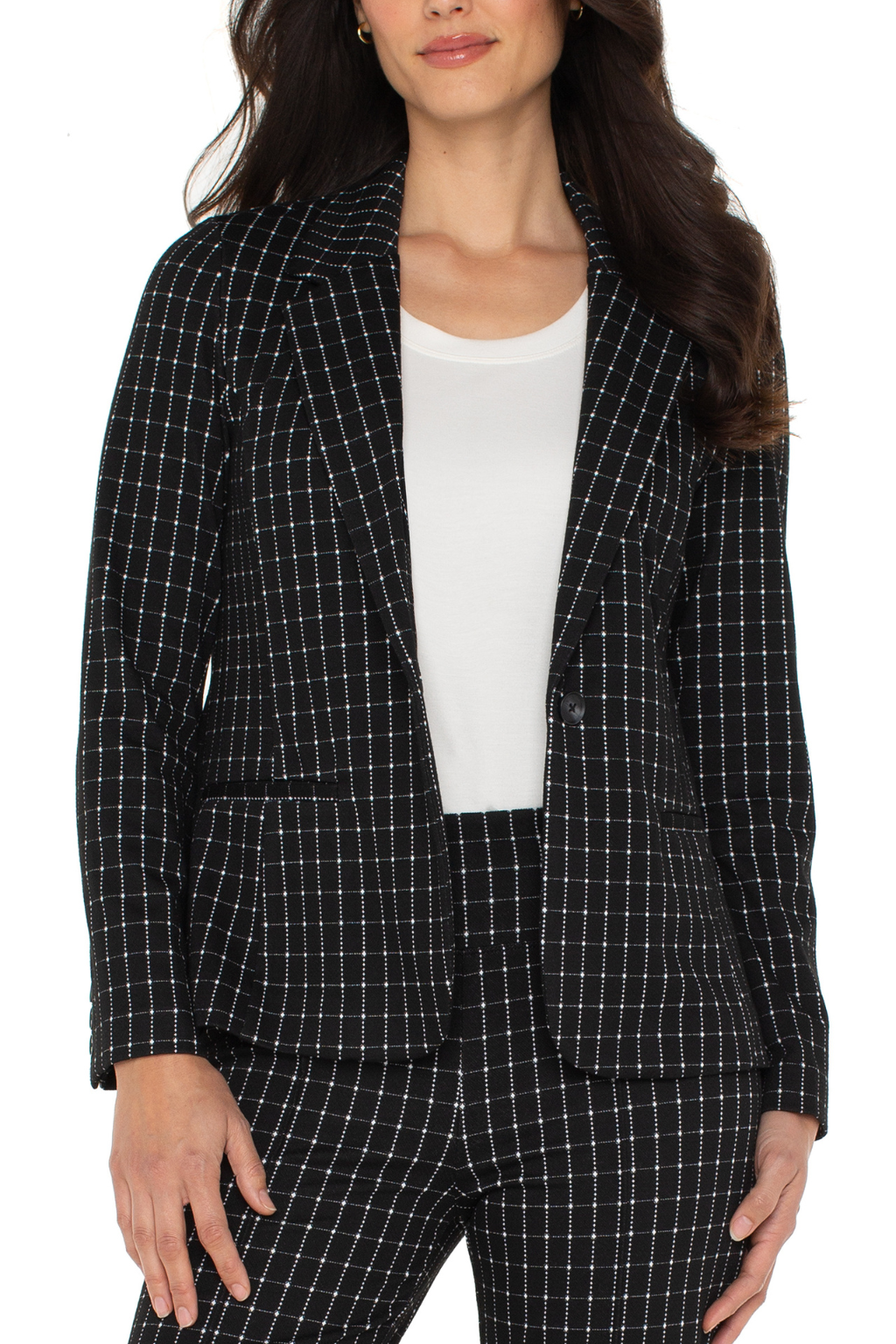 Win the style game with this sharp two-piece set that redefines modern tailoring. The fitted blazer sculpts the silhouette with effortless sophistication, while the pocketed trousers feature a versatile 28” inseam for a clean, wearable fit. A timeless grid pattern is elevated with a subtle hint of navy stripe, giving this suit unexpected depth and a luxe finish.