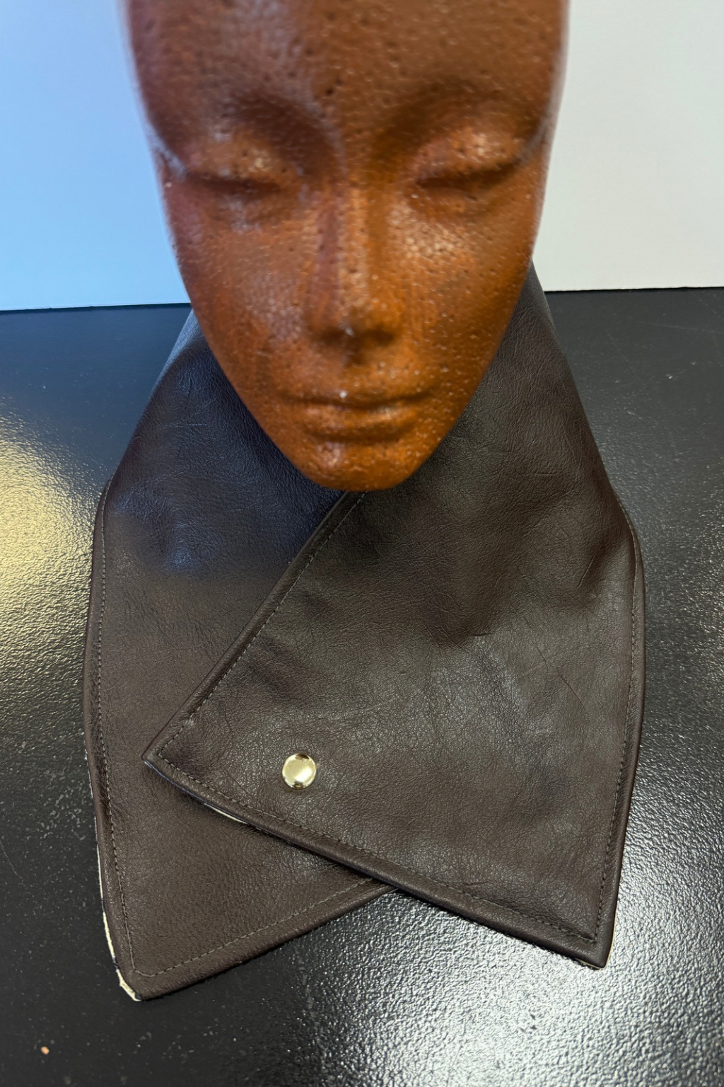 The Double Take Leather Neck Cuff is a striking, sculptural accessory crafted from 100% genuine leather and designed to turn heads from every angle. This dual-sided statement piece features a sleek wrap silhouette with a polished snap closure, allowing you to flip between a classic exterior and a bold interior for instant versatility.