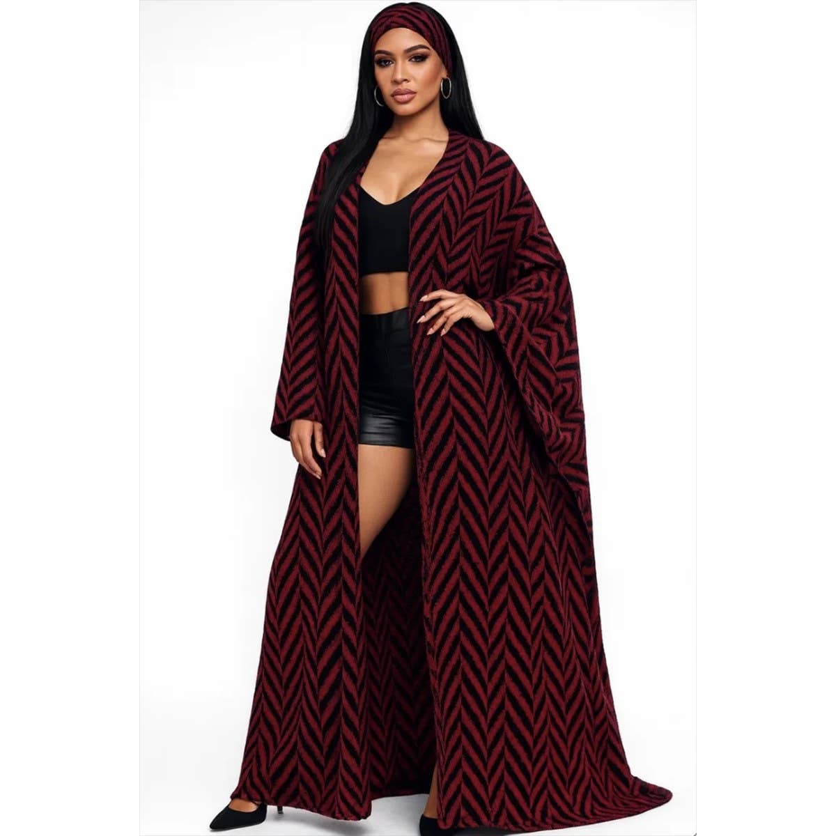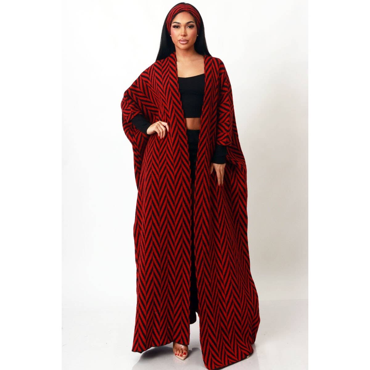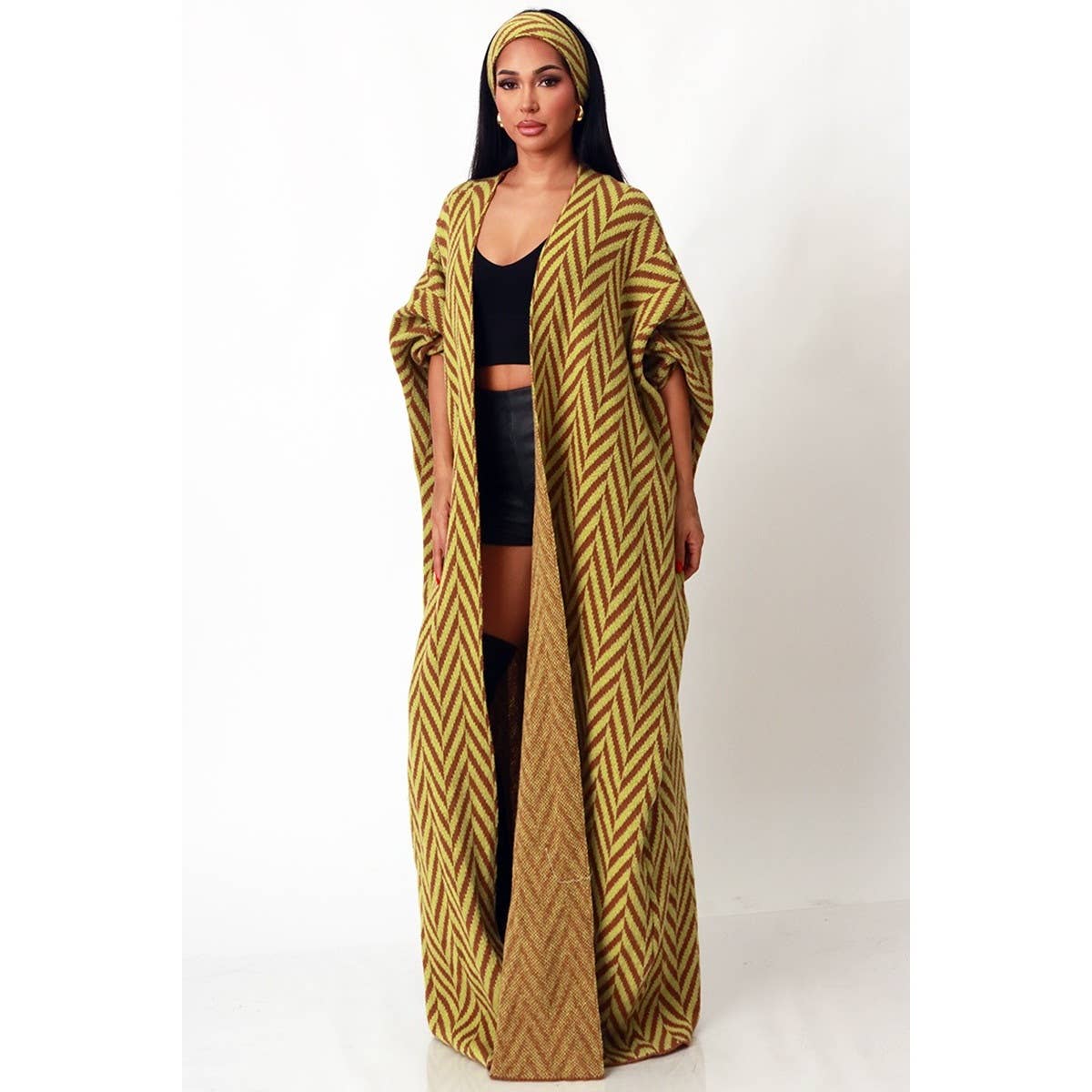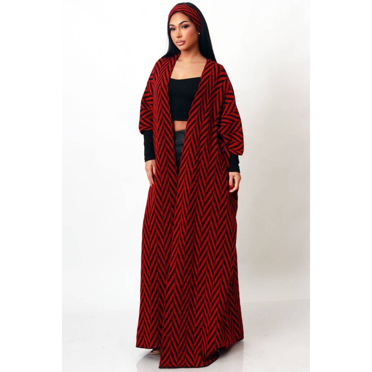 • Open-front maxi cardigan with matching headband