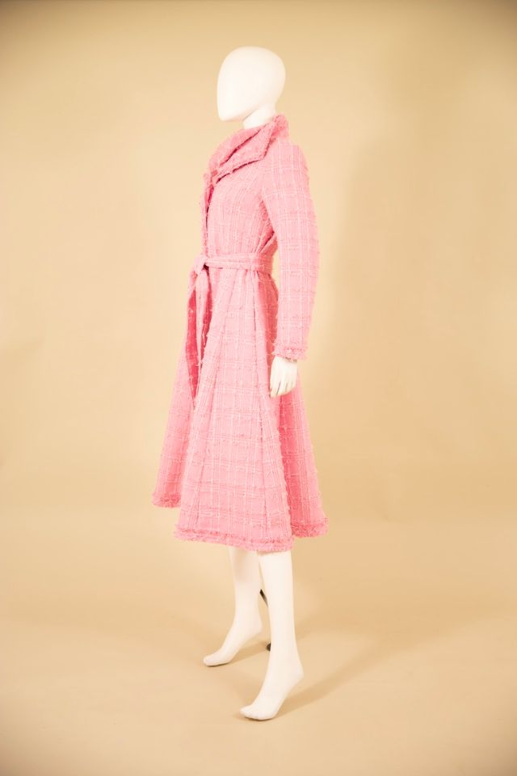 Grounded in couture craftsmanship, this coat presents a sophisticated double-collar neckline that adds architectural interest from the get-go. The tailored bodice gradually flares into a graceful A-line skirt, creating a look that’s both flattering and effortlessly feminine. A self-fabric belt cinches the waist, giving you the option to emphasize an hourglass silhouette or leave it relaxed for a more casual drape.