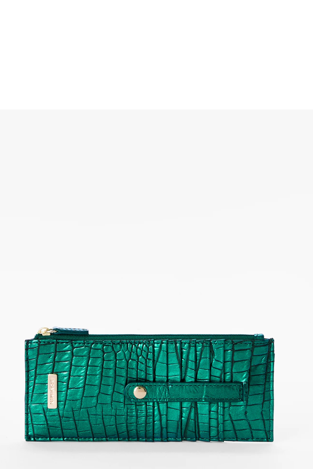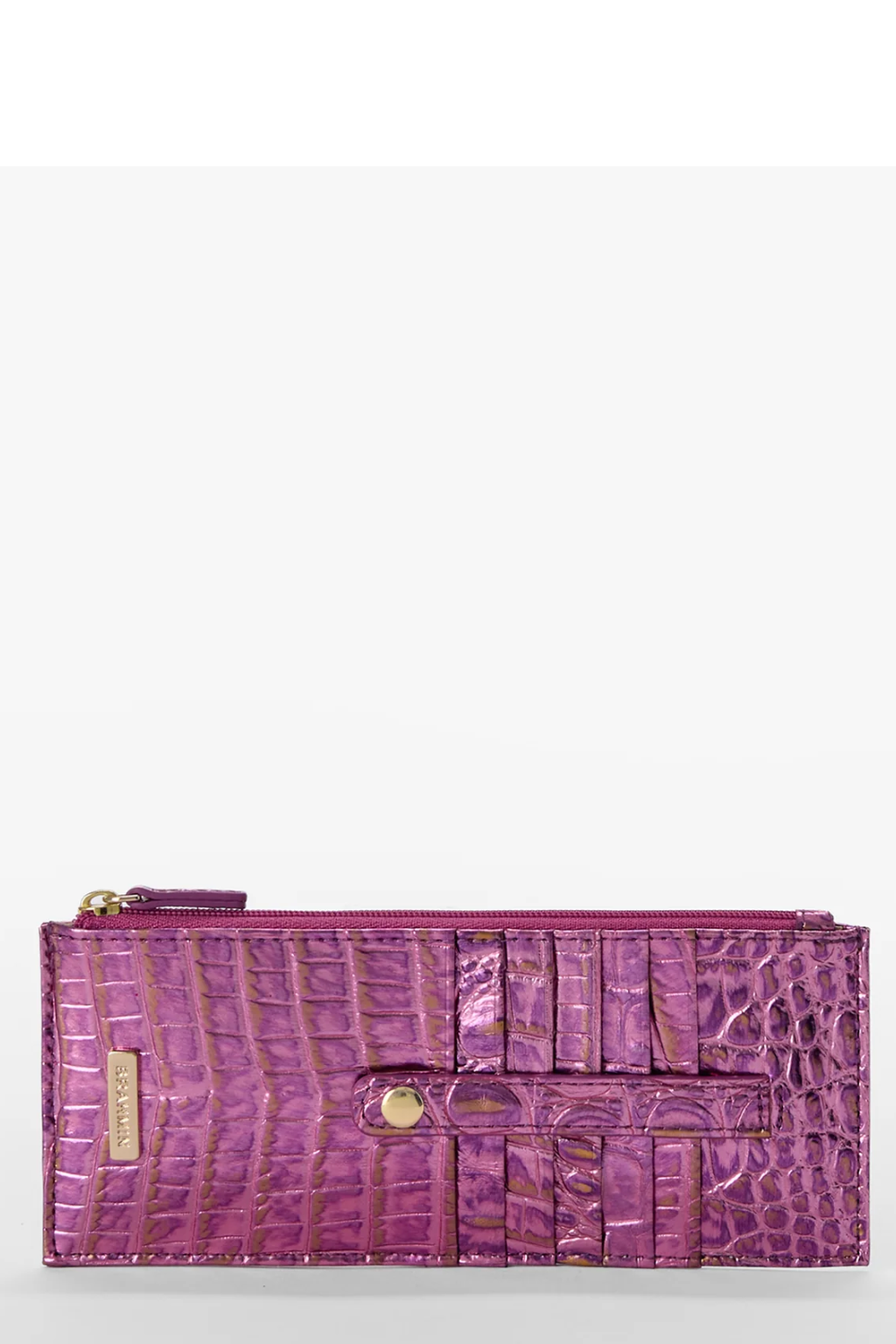Light weight, sleek and extremely practical, the Credit Card Wallet is perfect to fit in a clutch, wristlet or handbag. With ten credit card slots and one ID slot, this wallet is sure to hold your most important items. Zip top to carry money or receipts.