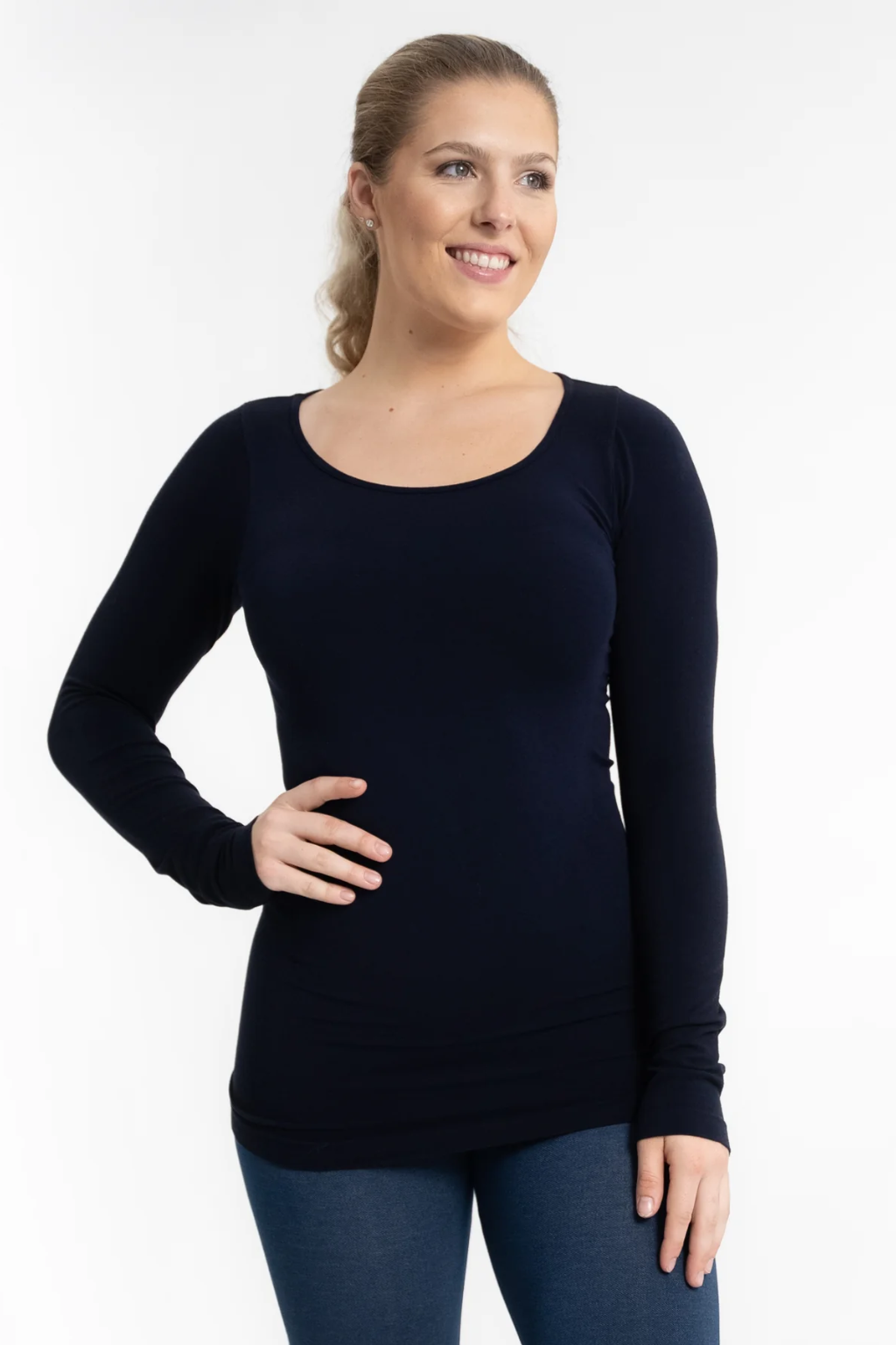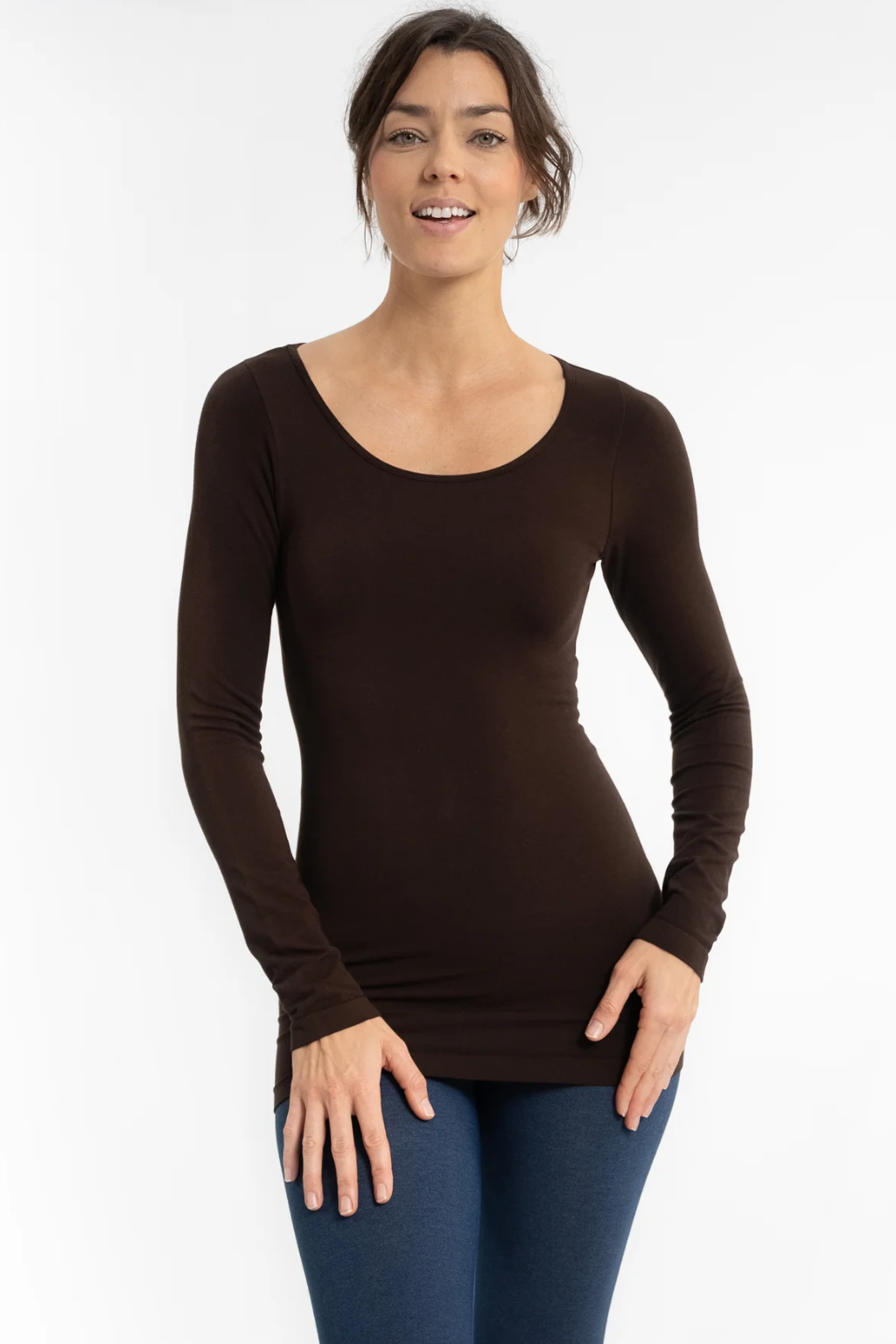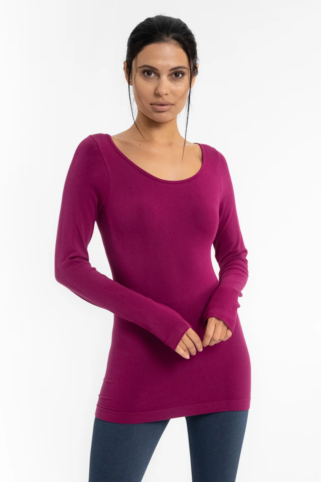 The perfect layering piece! It is seamless, stretching more than twice its size with our 4-way stretch technology, and it's also reversible - giving you the neckline option of your choice!